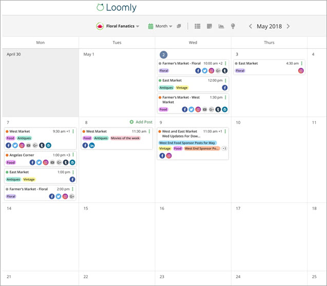Content calendar and post ideas in Loomly