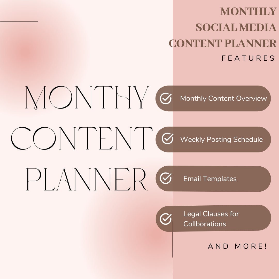 Content Creator Monthly Content Calendar Planner Template Digital