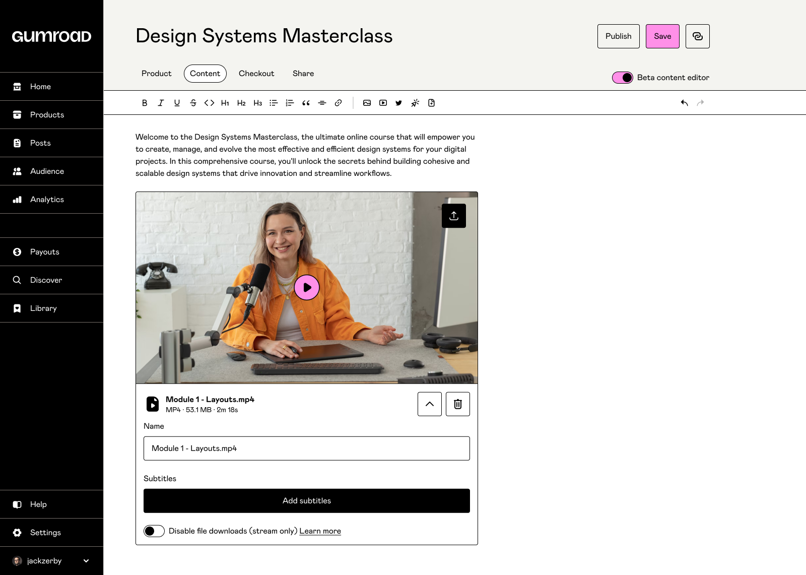 Embed Video Files Within the Gumroad Content Editor Gumroad