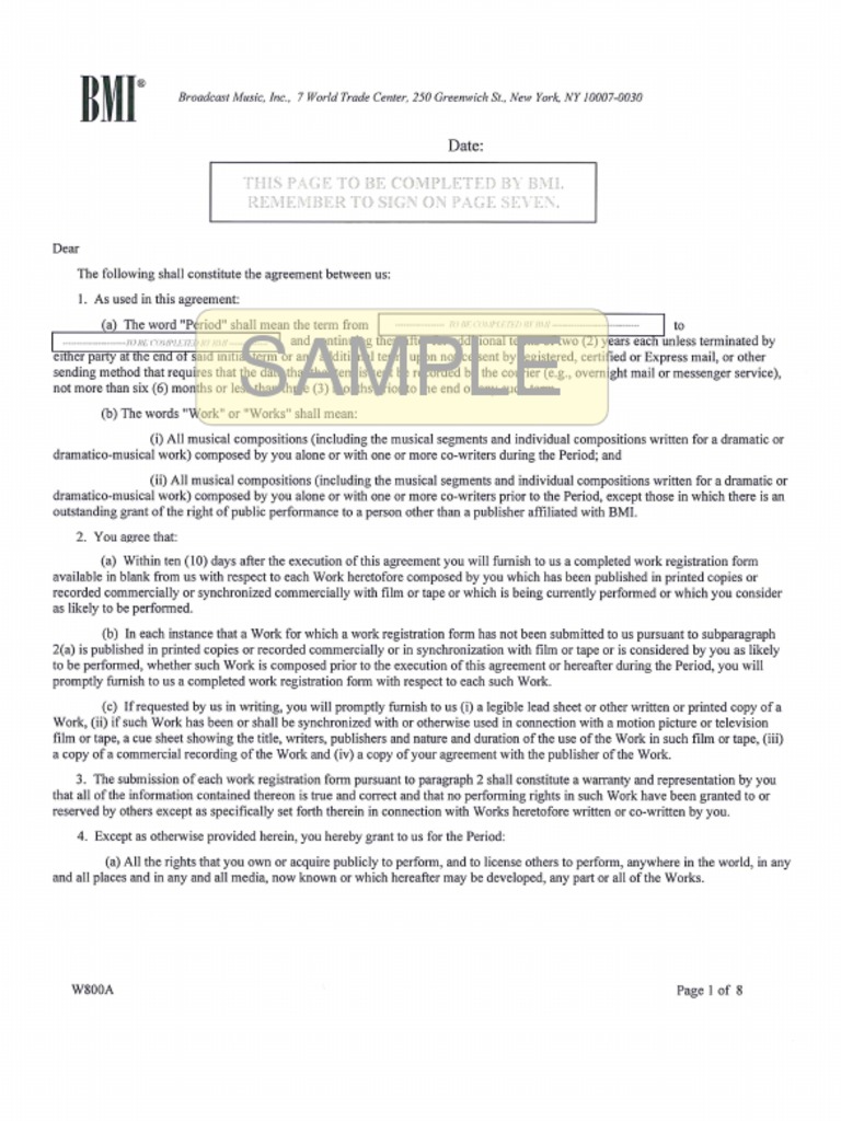 bmi writer agreement W800 pdf PDF
