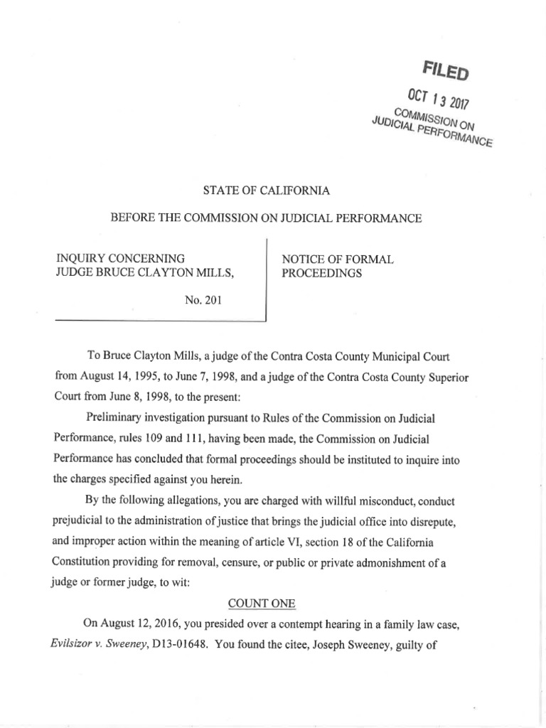 Notice of Formal Proceedings Against Judge Bruce Clayton Mills of