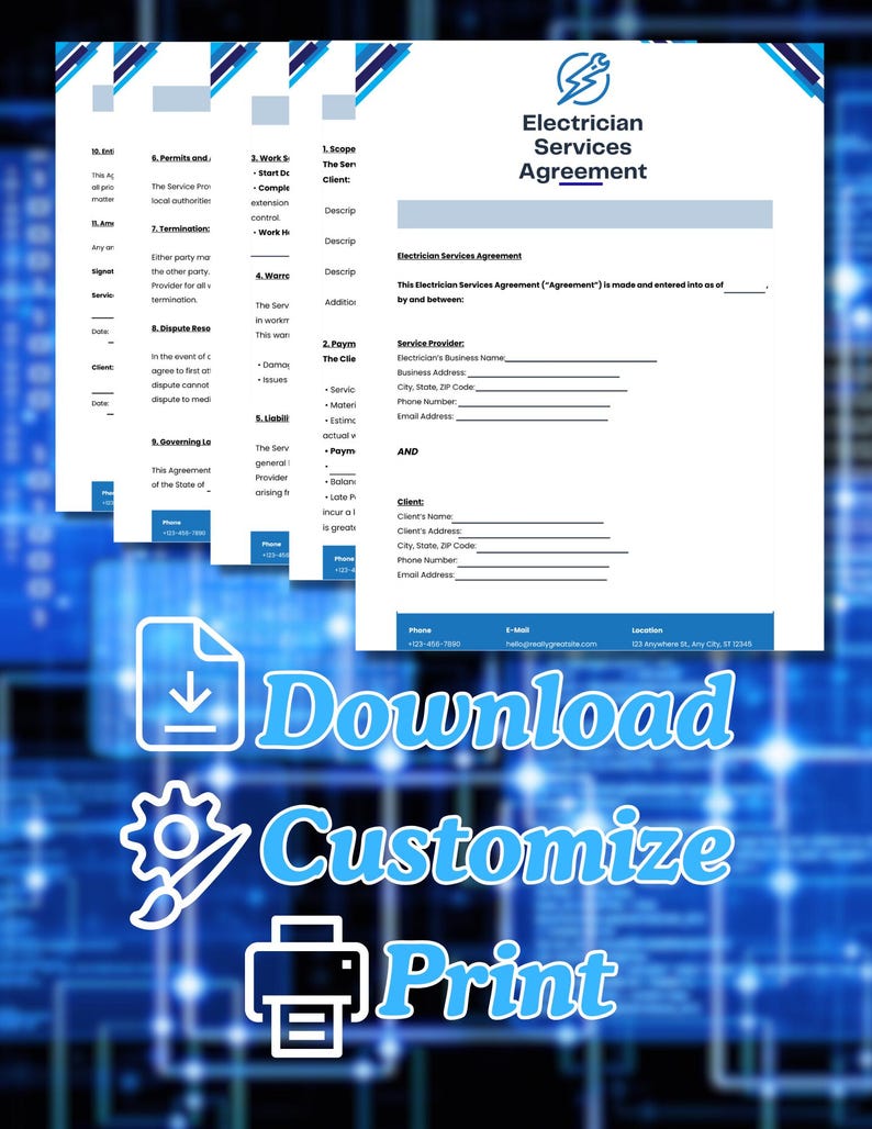 Editable and Printable Electrical Contract Template Electrical