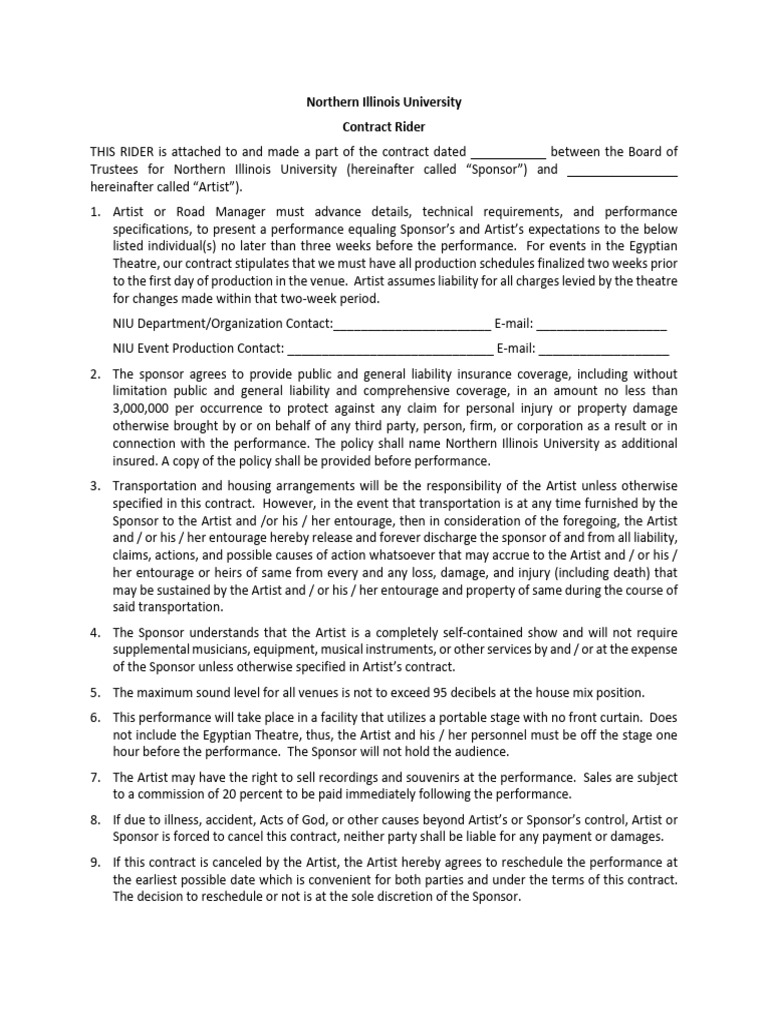 BAND PERANCE CONTRACT RIDER Doc Template pdfFiller