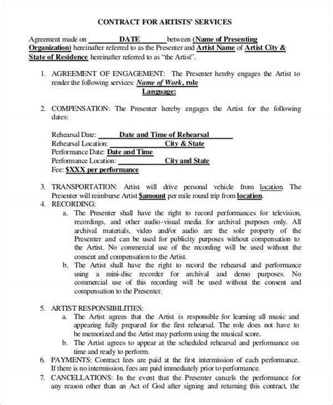 Contract Template For Artists