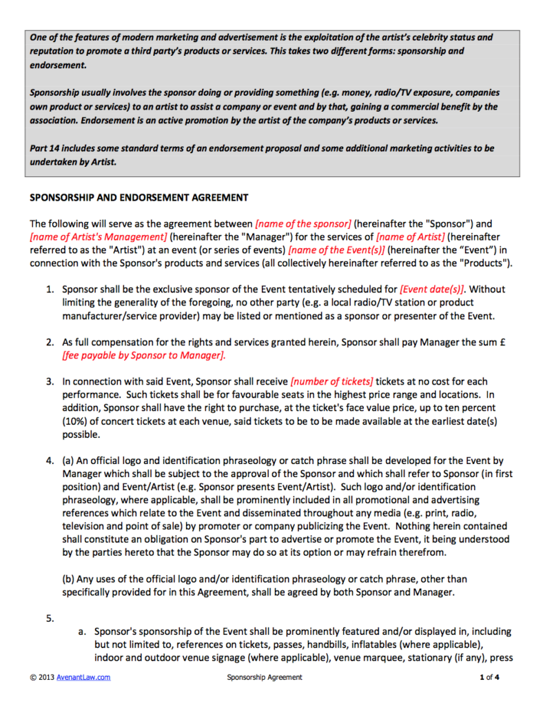 Sponsorship Contract Template for Artists Bogiolo