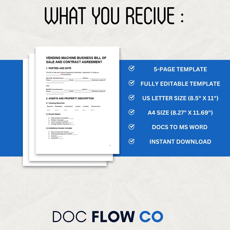 Printable Vending Machine Routes Bill of Sale Contract Template