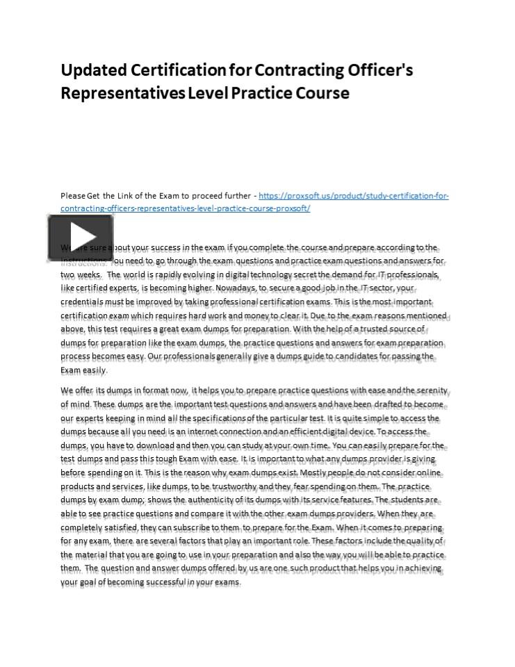 Updated Certification for Contracting Officer #39 s Representatives Level