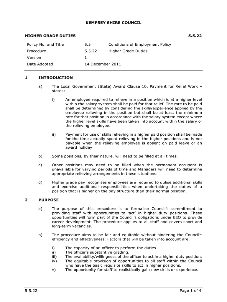 Fillable Online Procedure 5 5 22 Higher Grade Duties Ver 1 Updated