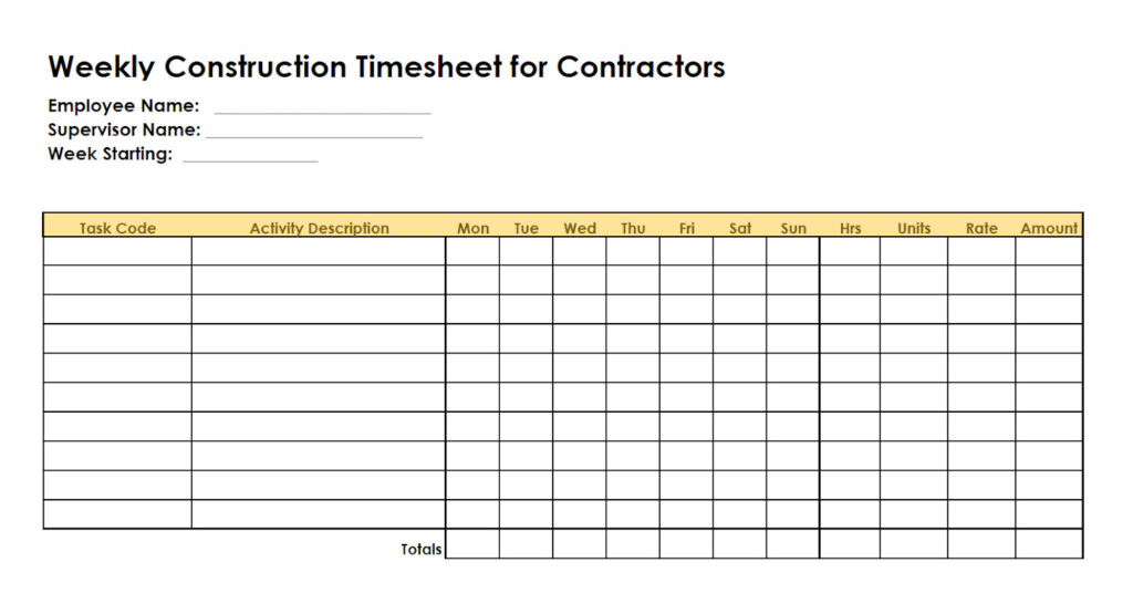 Free Construction Timesheet Templates (Excel PDF Word) 57% OFF