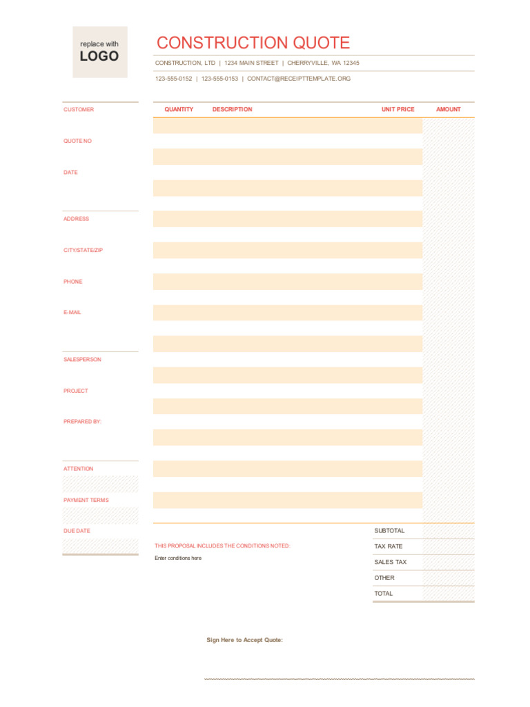 Free Construction Quote Template Word PDF Google Docs Highfile