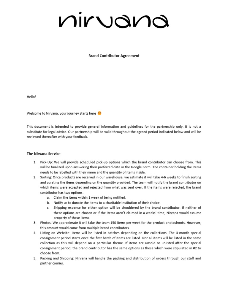 Nirvana Brand Contributor Agreement (Client) PDF Confidentiality