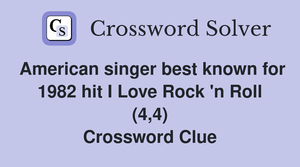 American singer best known for 1982 hit I Love Rock #39 n Roll (4 4