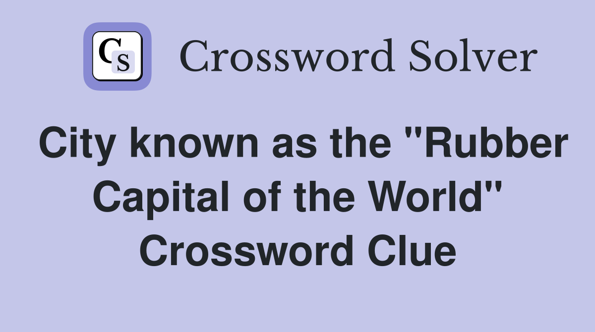 City known as the quot Rubber Capital of the World quot Crossword Clue