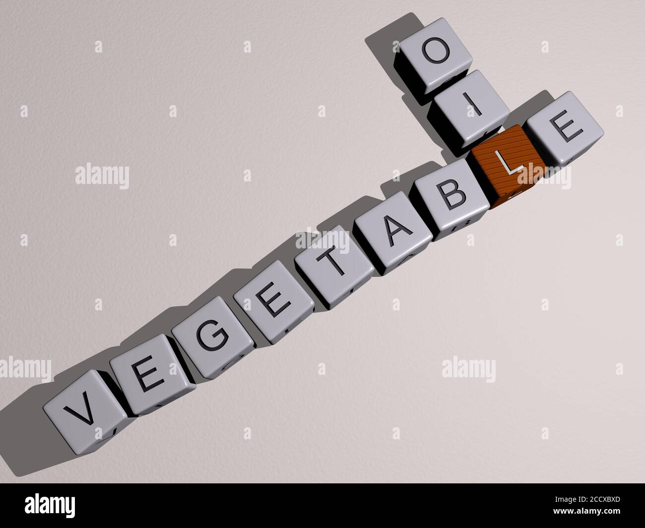 VEGETABLE OIL crossword by cubic dice letters 3D illustration Stock