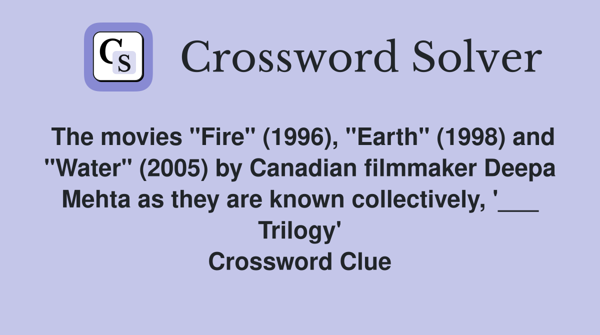 The movies quot Fire quot (1996) quot Earth quot (1998) and quot Water quot (2005) by Canadian