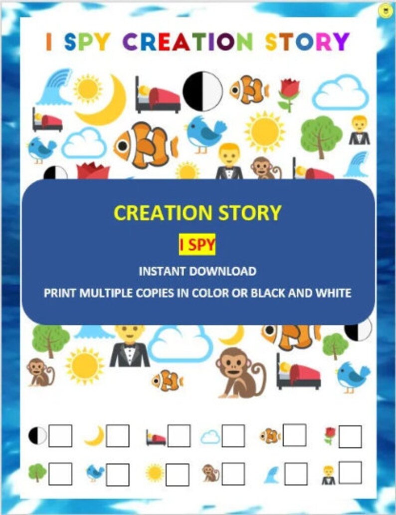 Creation Story Activity Bundle: I Spy Maze Crossword (printable