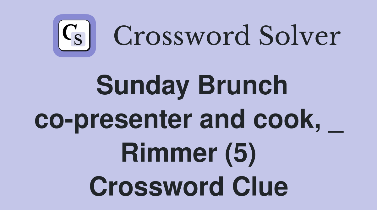 Sunday Brunch co presenter and cook Rimmer (5) Crossword Clue