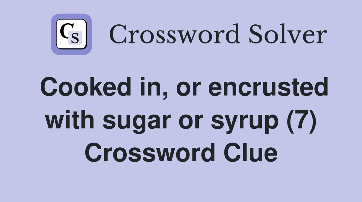 Cooked in or encrusted with sugar or syrup (7) Crossword Clue