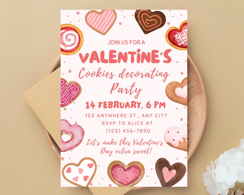Valentine #39 s Cookie Decorating Party Invitation Template (editable Canva