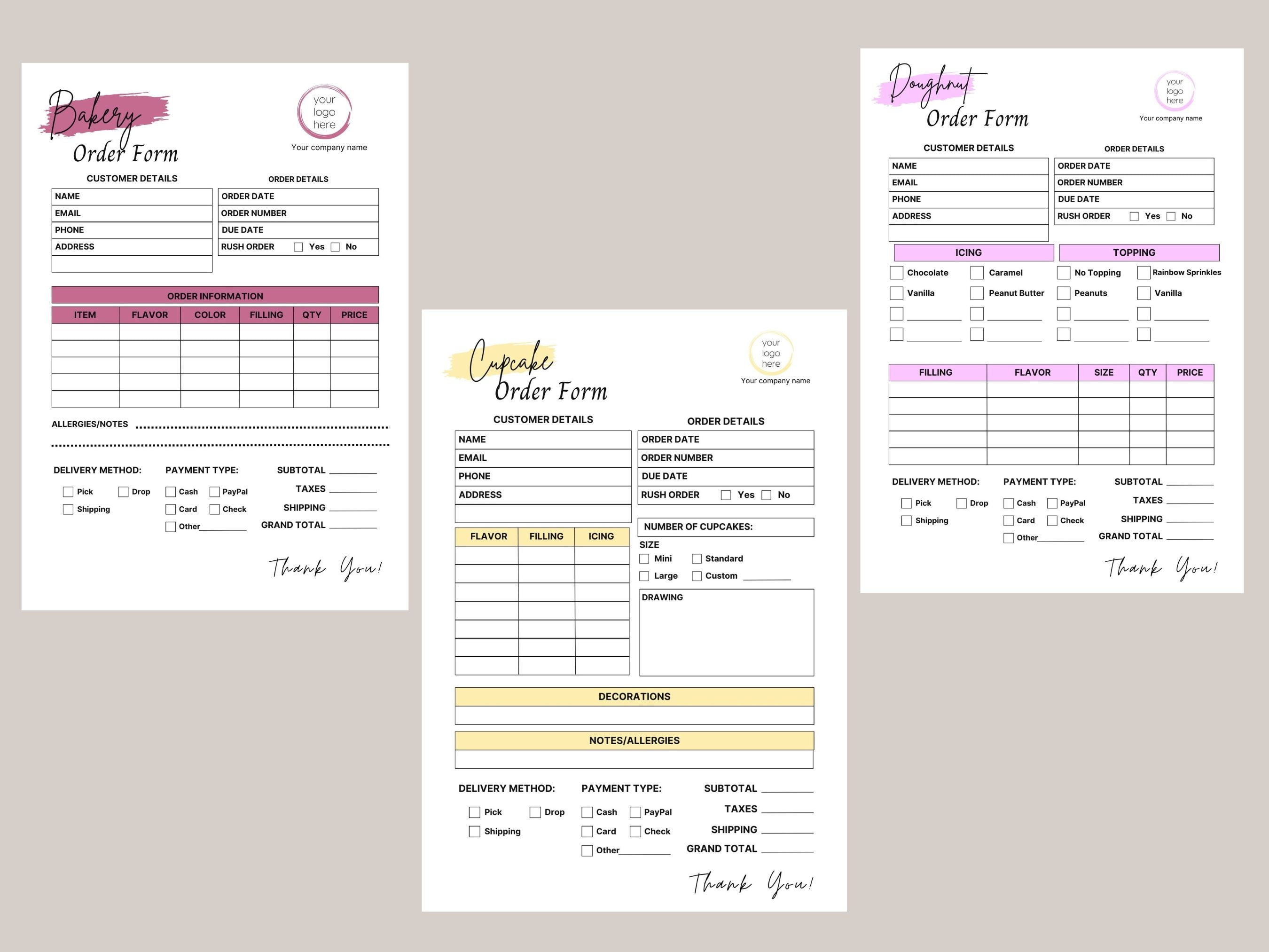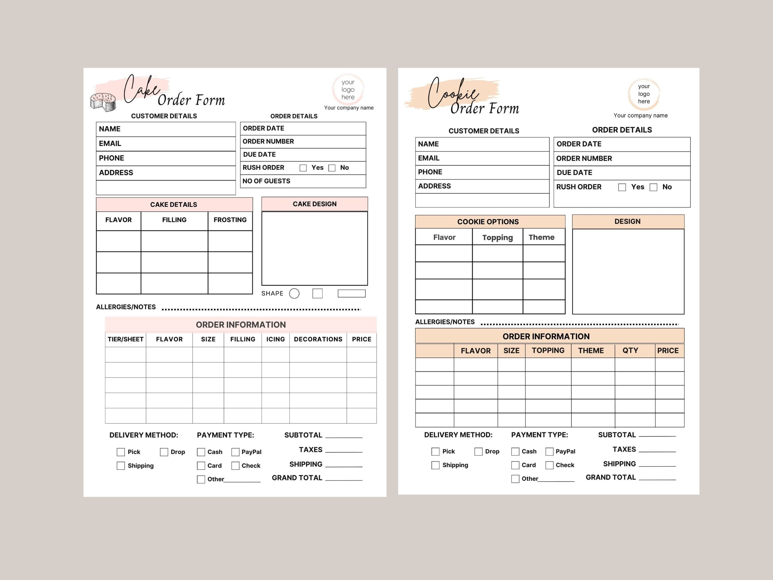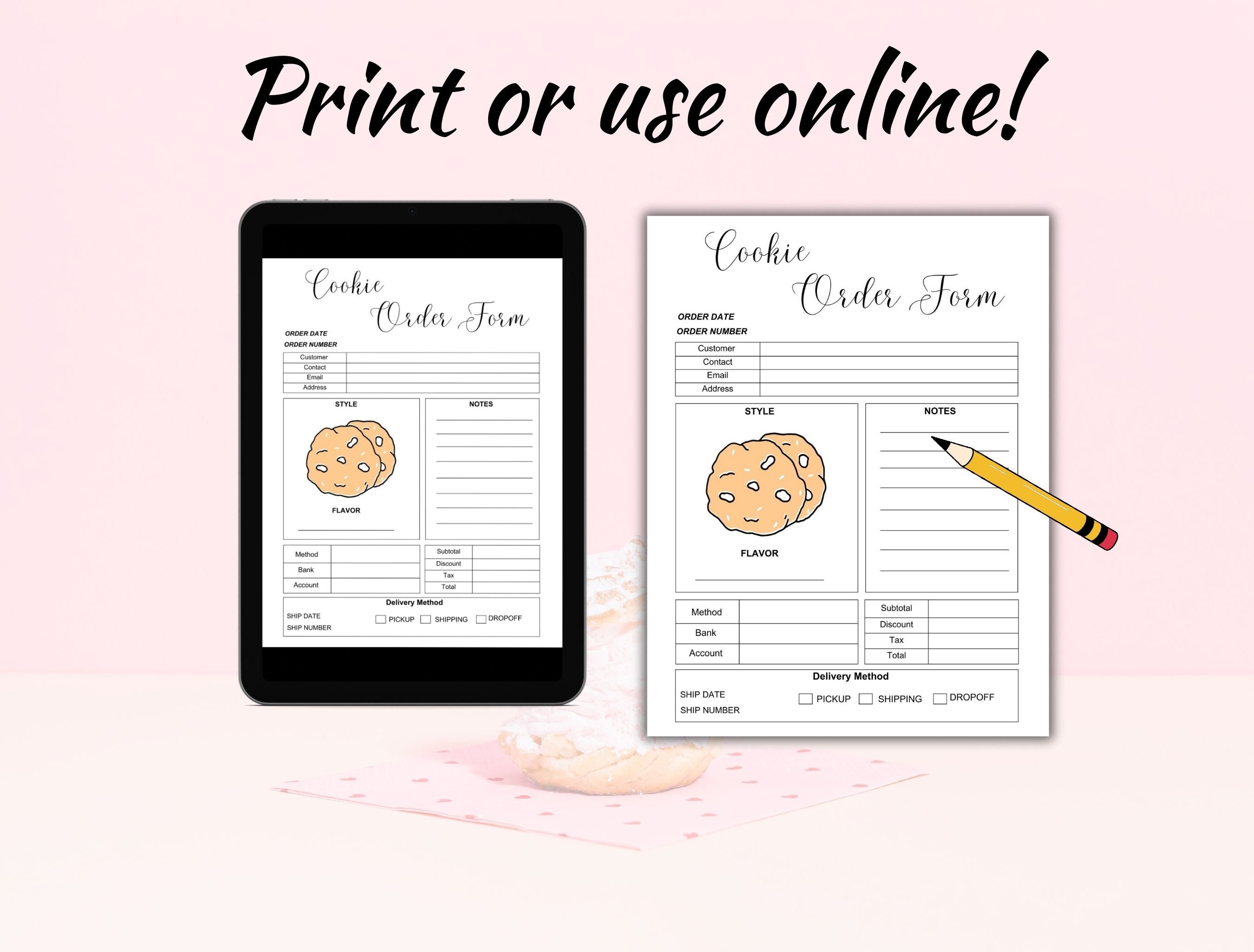 Printable Cookie Order Form Template Editable Bakery Order Form A4/US