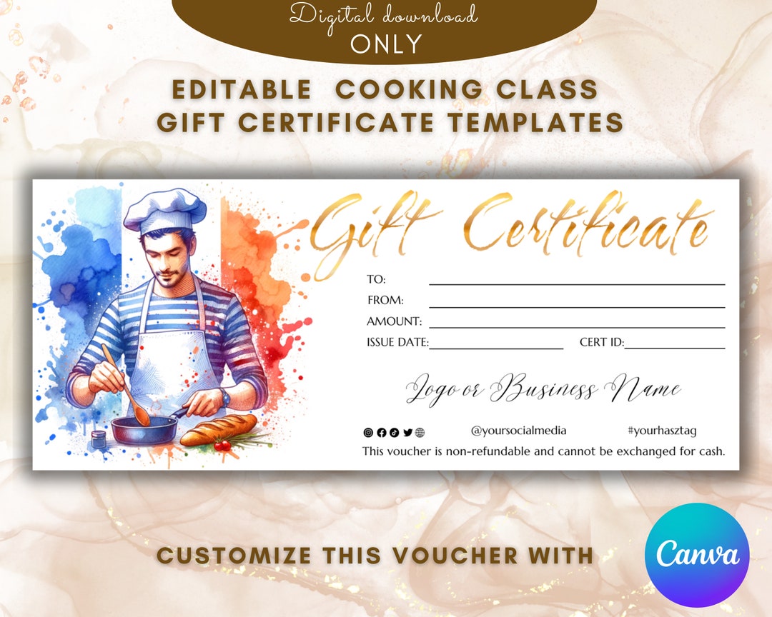 Editable Cooking Class Gift Certificate Template Custom Etsy