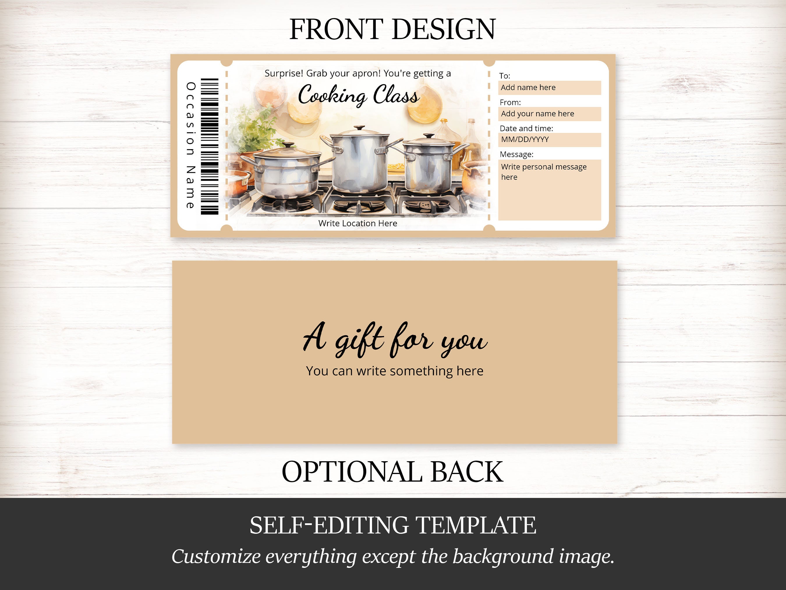 Cooking Class Voucher EDITABLE Template Custom Gift Certificate