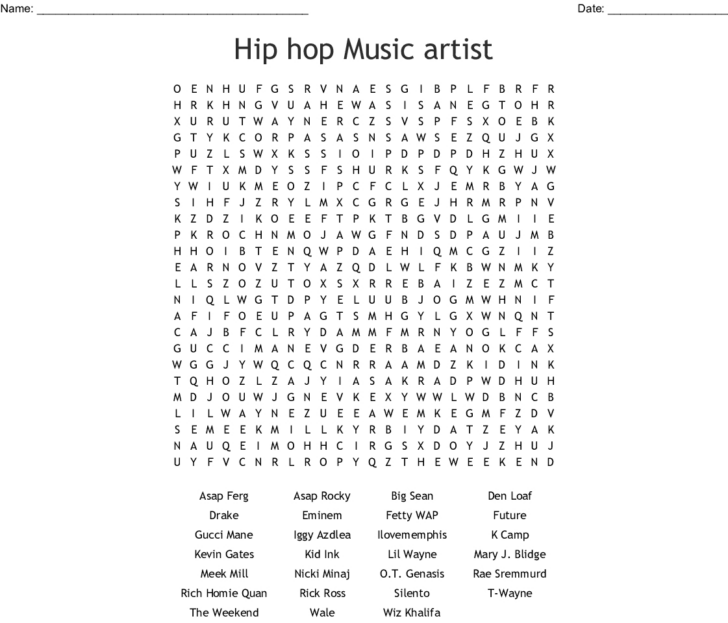 Hip Hop Word Search WordMint