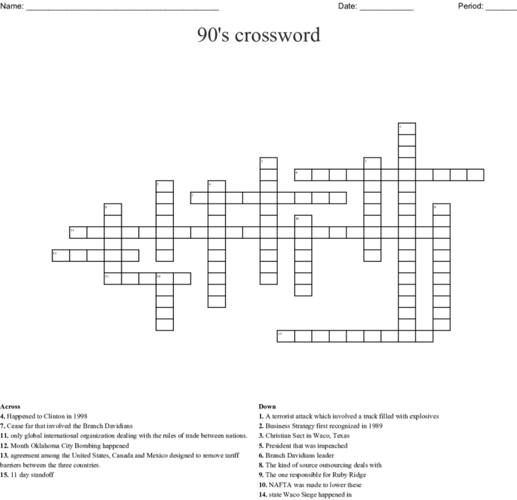90S Crossword Puzzle Printable Printable Crossword Puzzles Sally