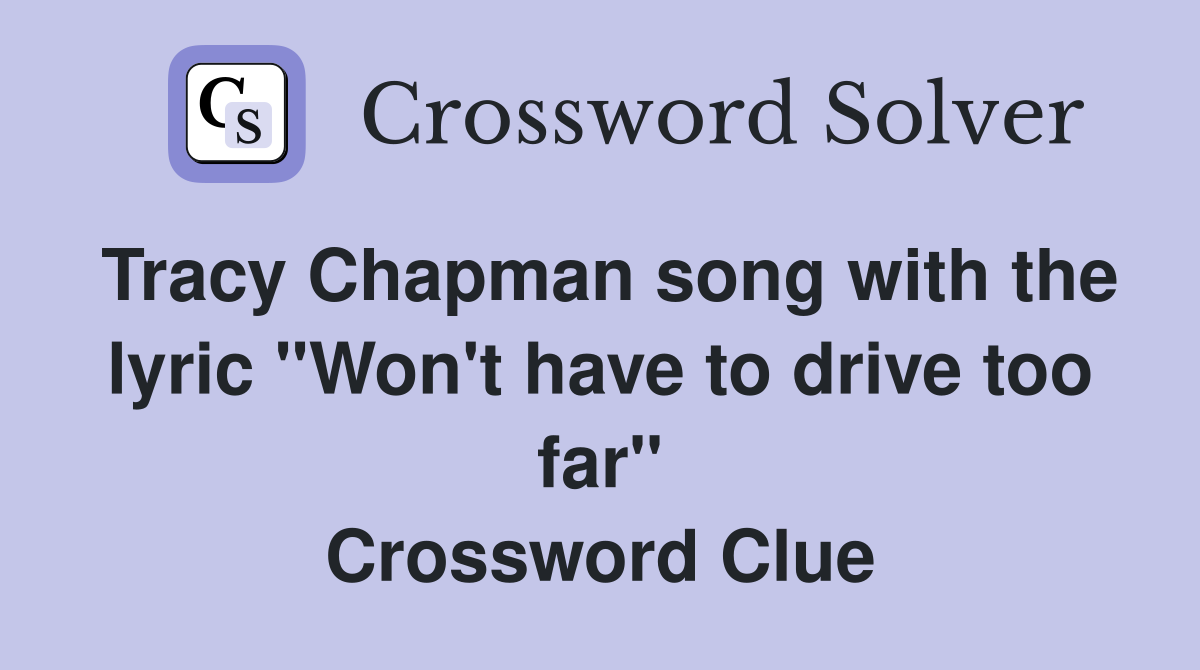 Tracy Chapman song with the lyric quot Won #39 t have to drive too far