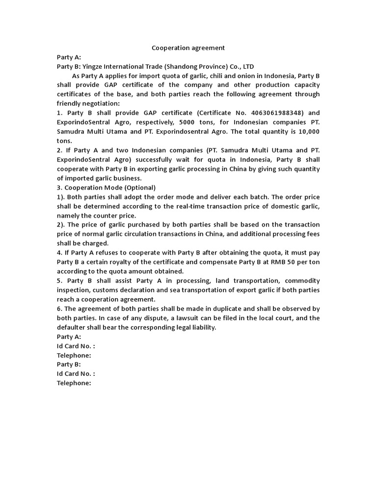 Cooperation Agreement Template Google Docs Word Apple Pages