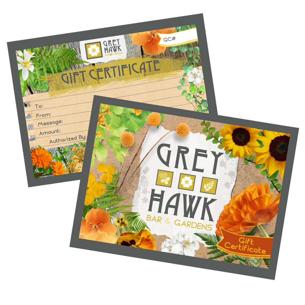 Get a Grey Hawk Gift Certificate Grey Hawk Bar Gardens