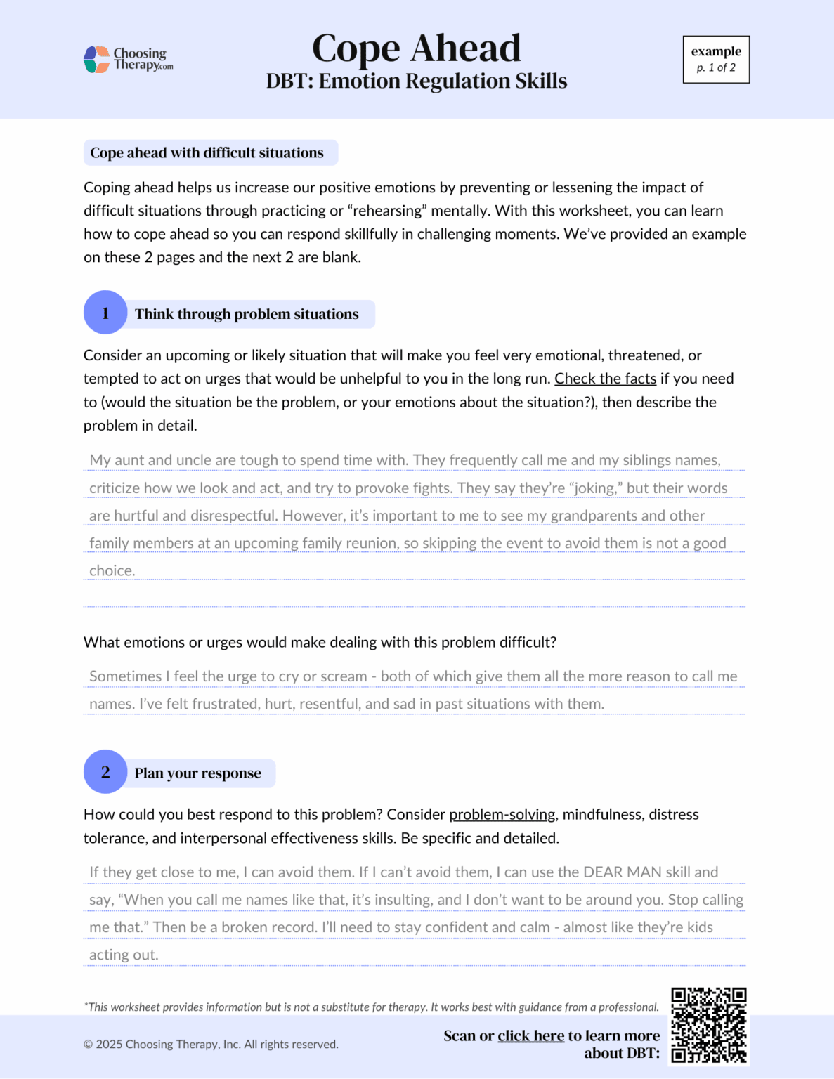 Cope Ahead DBT Worksheet (Free Printable PDF) ChoosingTherapy com
