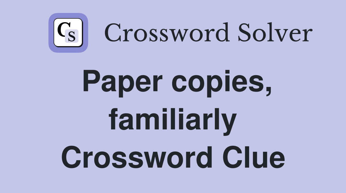 Paper copies familiarly Crossword Clue Answers Crossword Solver