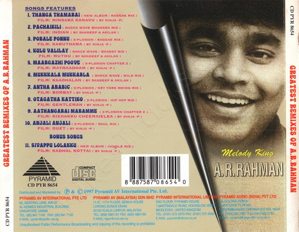 Greatest Remixes Of A R Rahman (1999) (A R Rahman) Pyramid CD PYR