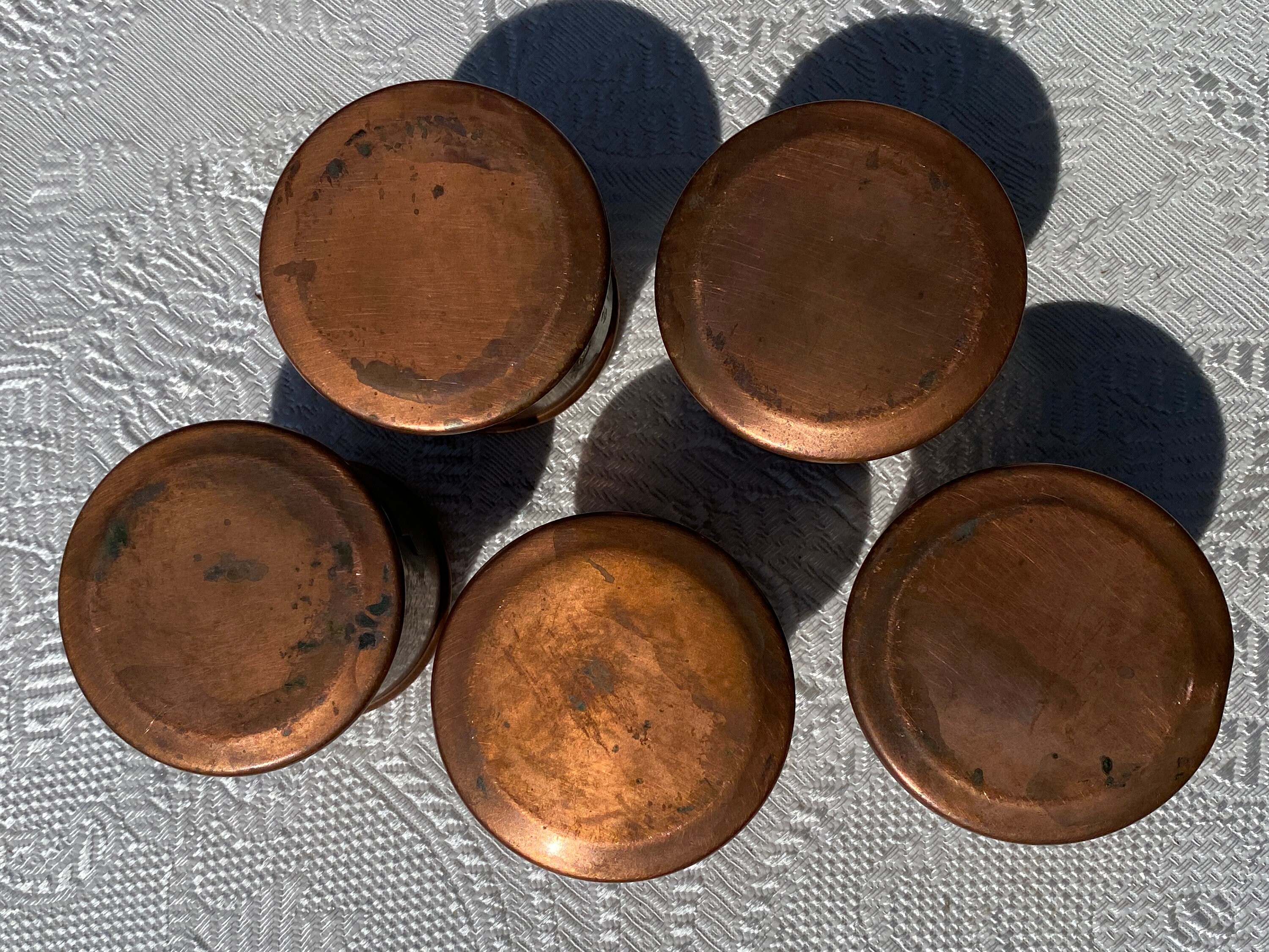 Set of 5 French Copper Canisters Tin Lined Spice / Herb Storage Jars