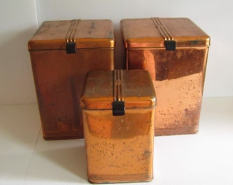 Copper Canisters Set of Metal Canister With Lids Farmhouse Etsy