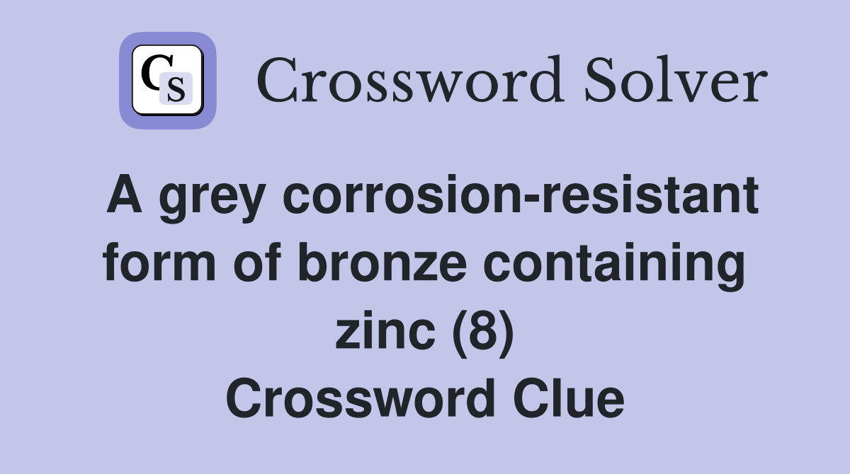 Here are some of the images for Copper And Zinc Alloy Crossword Clue that we found in our website database.