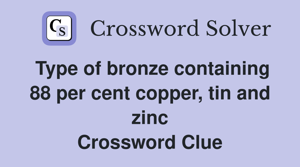 Type of bronze containing 88 per cent copper tin and zinc Crossword