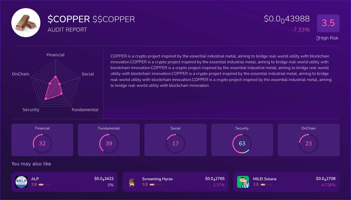 Kryll³ $$COPPER ($COPPER) X Ray Score Trusted Token Audit On Chain