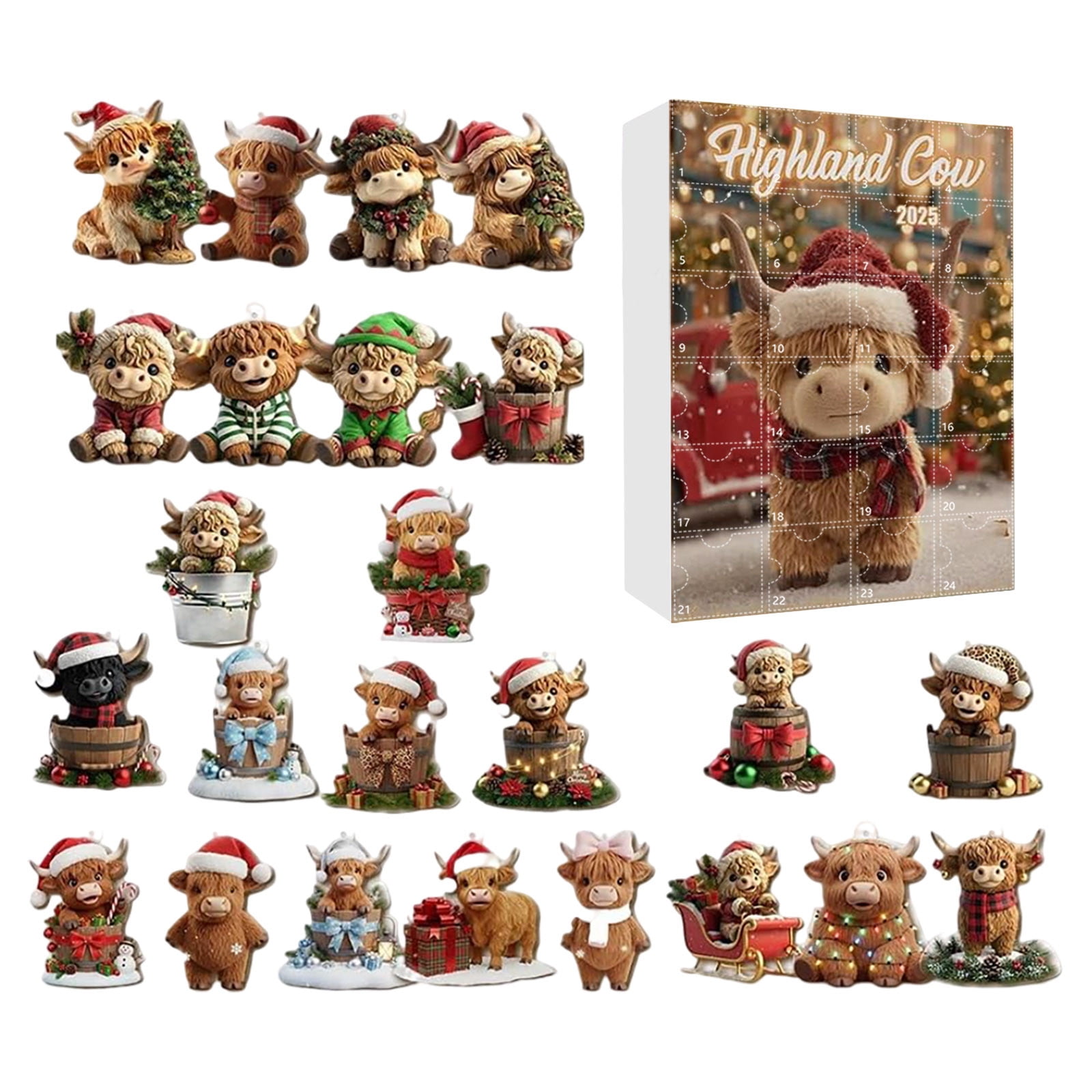 Highland Cow Advent Calendar 2025 Cute Christmas Ornaments Holiday Gift