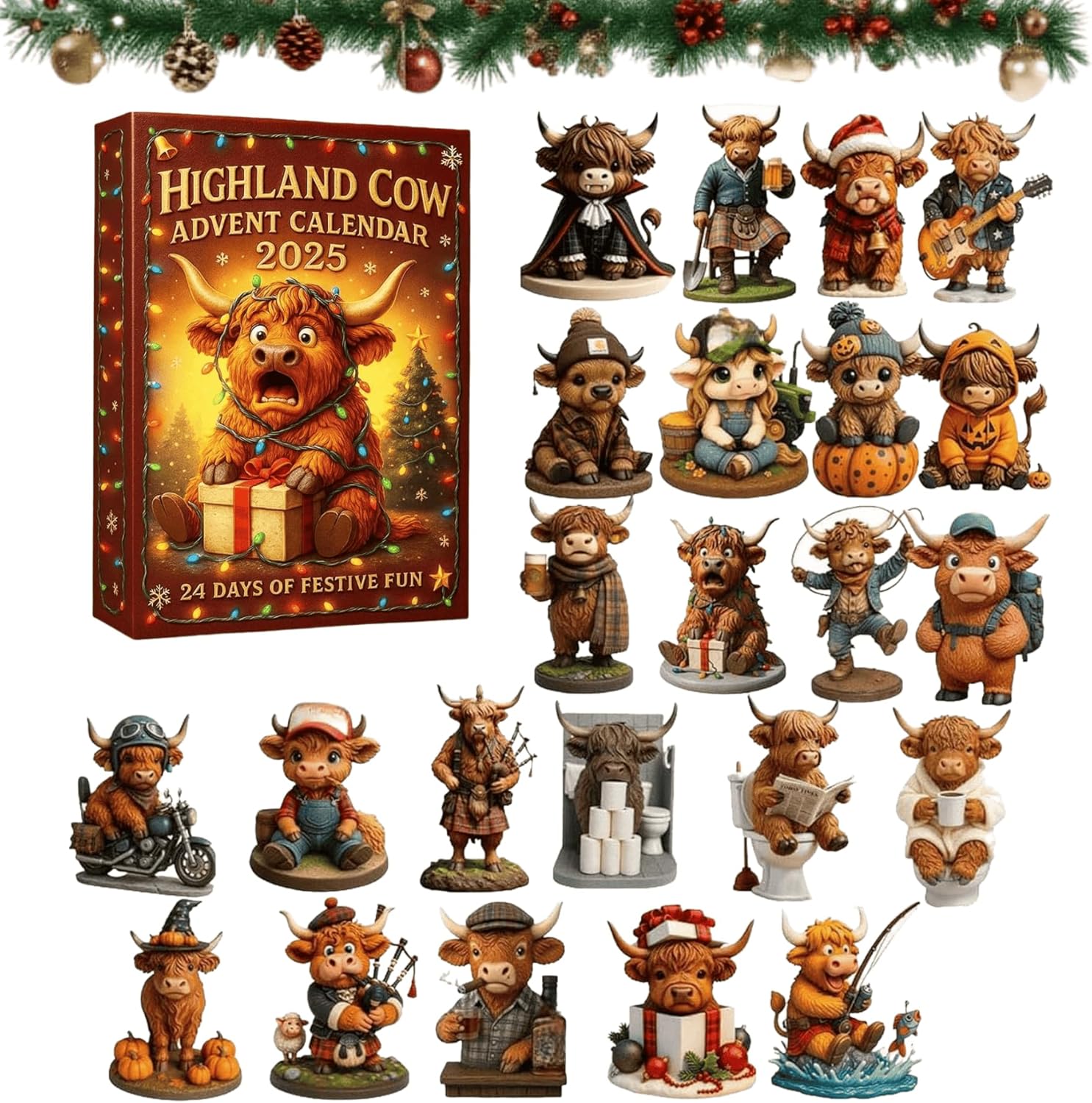 Highland Cow Advent Calendar 2025 Highland Cow Christmas Decoration 24