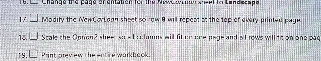 16 Change the page orientation for the New Car Loan sheet to Landscape
