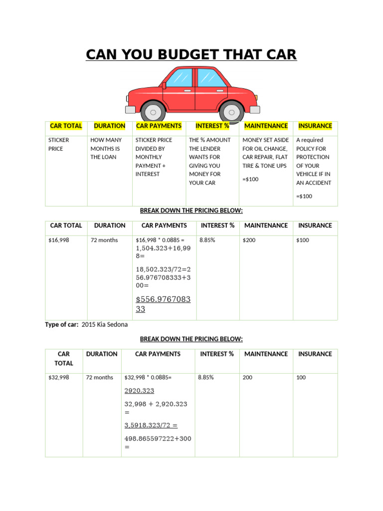 Auto Loan Worksheet Amy Cesal Worksheets Library