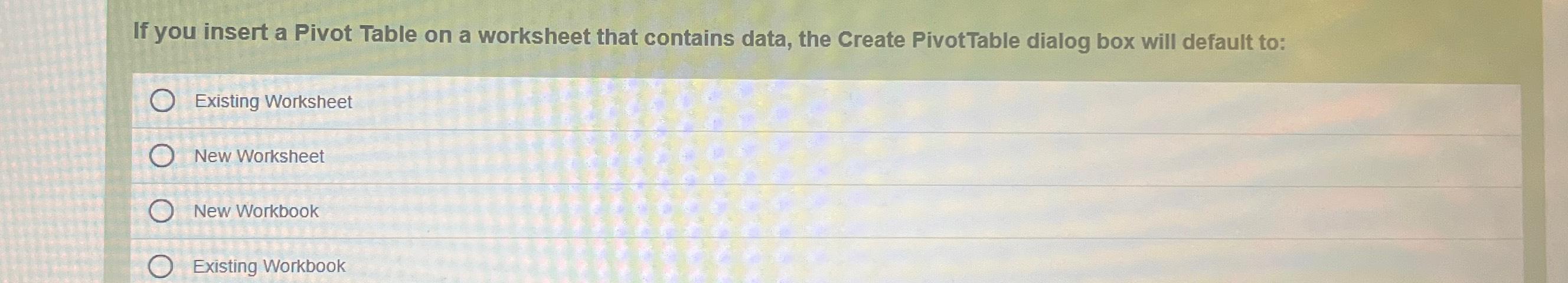If you insert a Pivot Table on a worksheet that Chegg com