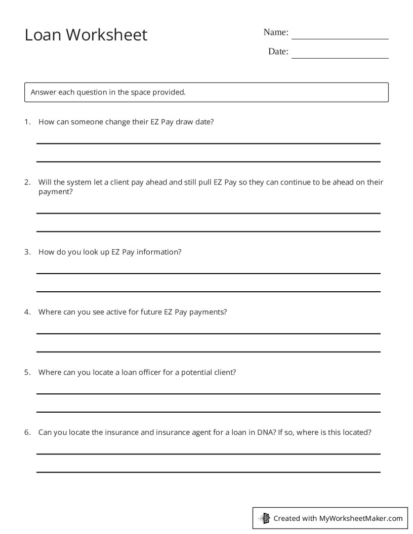 Loan Worksheet My Worksheet Maker: Create Your Own Worksheets