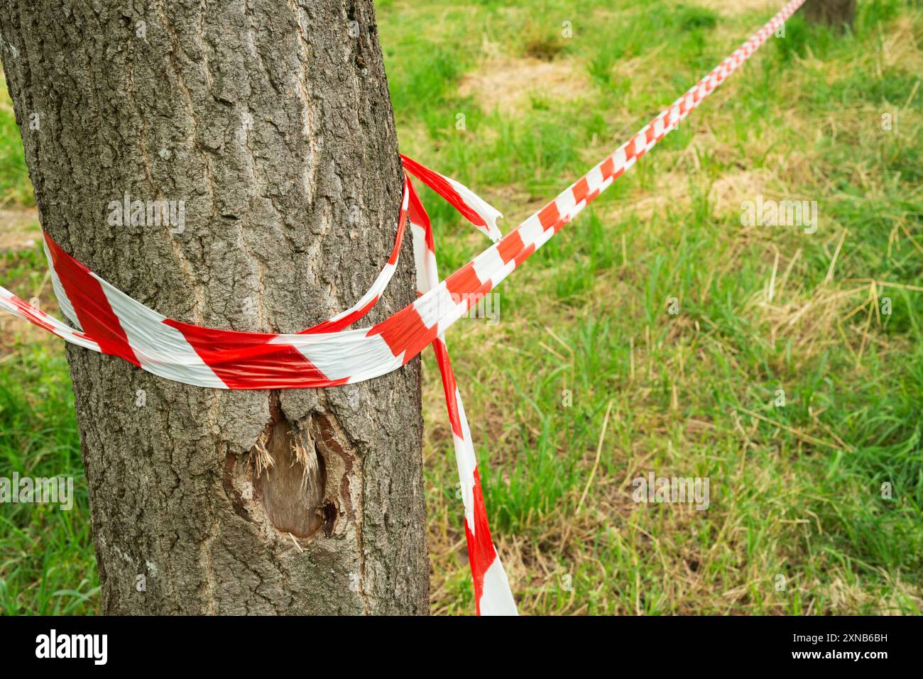 Tree Bark Cordoned Off With Tape Due Stock Photo Alamy