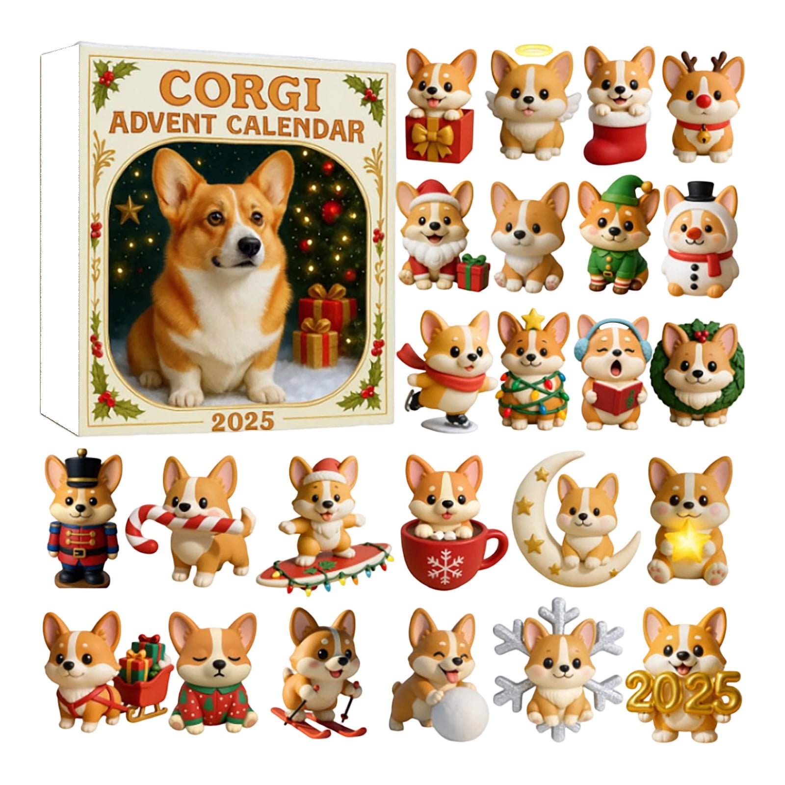 Corgi Advent Calendar 2025 Mini Dog Figurine Set Christmas Countdown