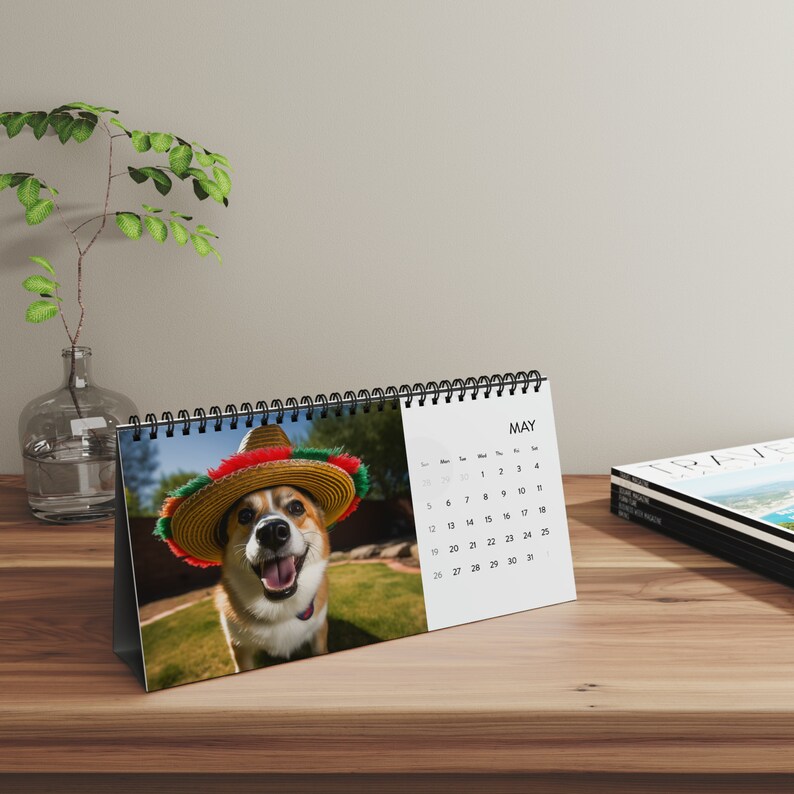 2026 Mini Corgi Calendar With Optional Wood or Metal Stand Each
