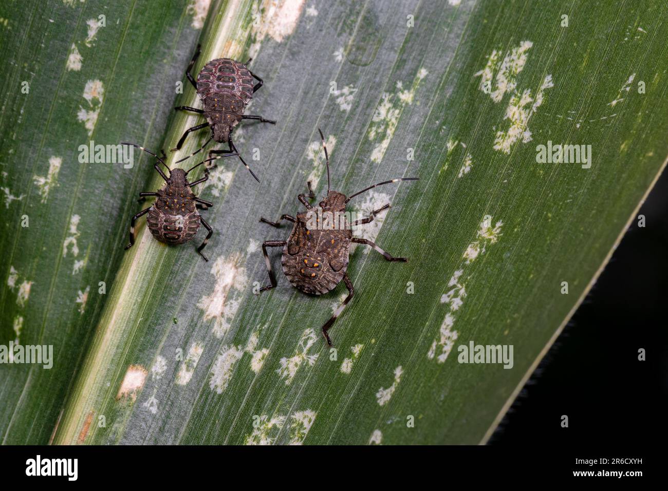 Brown marmorated stink bug instar on corn leaf Agriculture crop