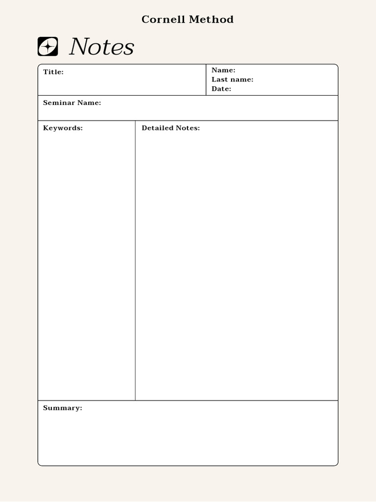 Cornell Method Note Taking Template Study Smarter Stay Organized